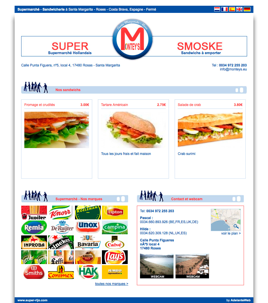 Montey's est une supérette et sandwicherie à Roses en Espagne, tenue par des hollandais, vendant exclusivement des produits hollandais.