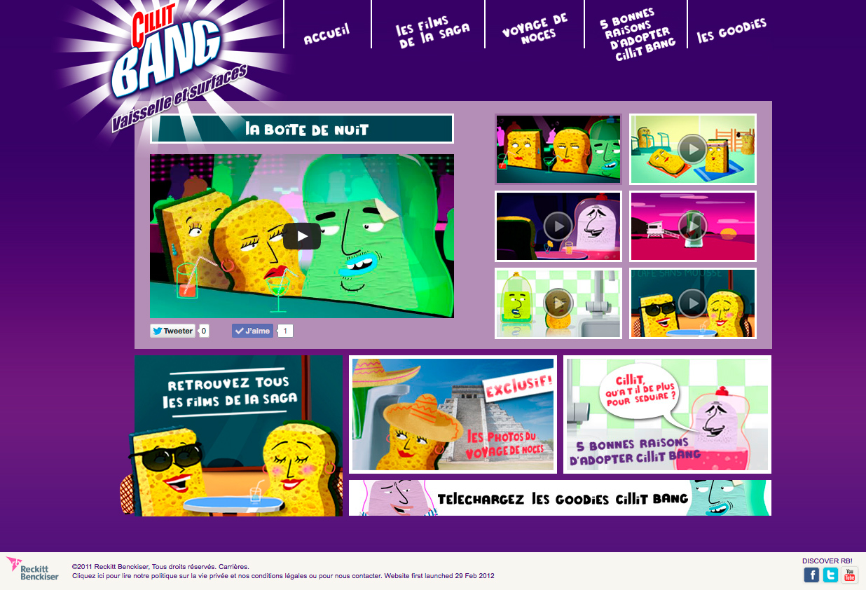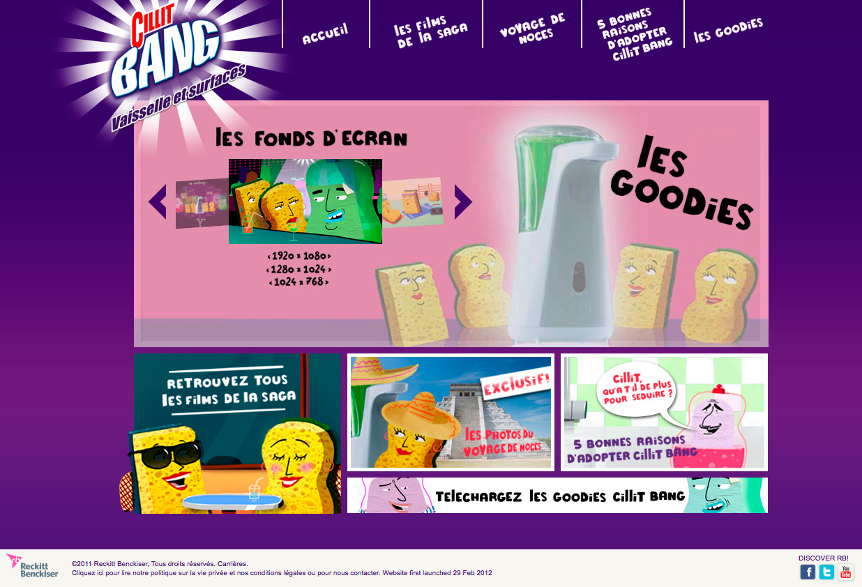 Site non administrable présentant des vidéos de promotion, des images et des goodies à télécharger.