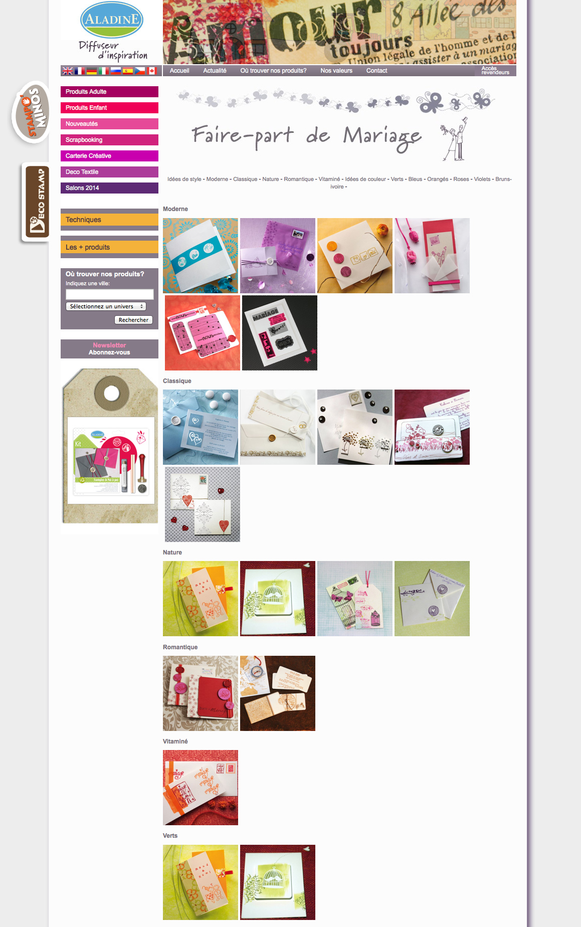 AladinE est une société spécialisée dans le scrapbooking, les faire-parts et autres jeux développant la créativité chez l'enfant. Elle distribue plus de 3.000.000 de produits par an à travers le monde.