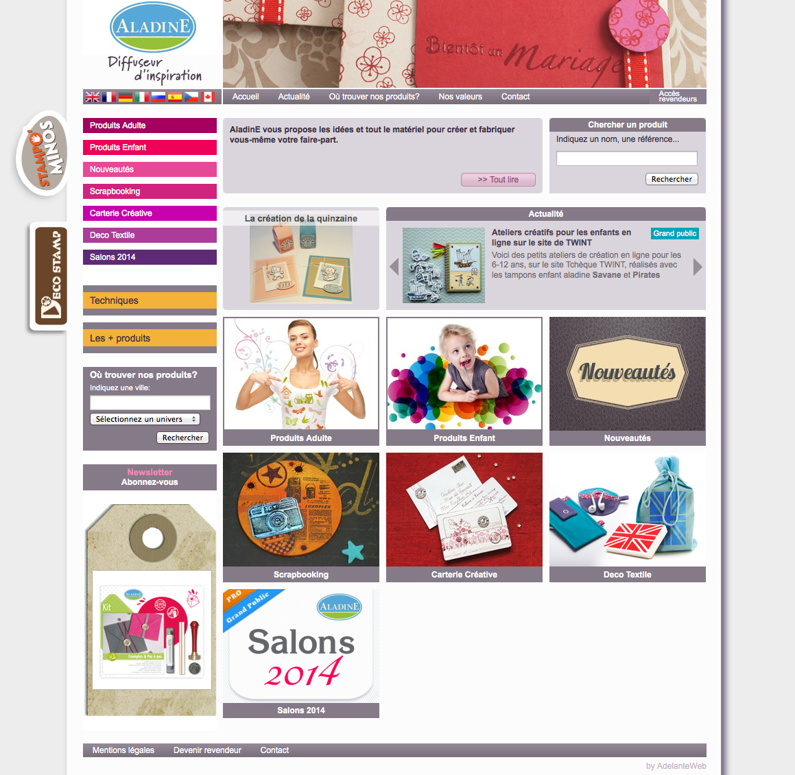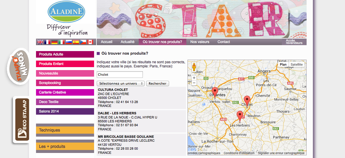 Le site est un catalogue contenant plus de 900 références ainsi que plusieurs pages entièrement administrables en 5 langues. Sur cette base de données viendront se greffer d'autres sites de la société AladinE.